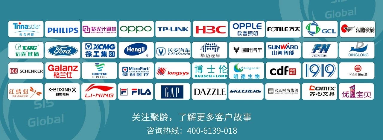 目前聚龄在国内服务的代表企业有数百家,其中包括了如欧普照明、飞利浦、方太集团、OPPO、TP-Link、紫光集团、新华三、江波龙、徐工集团、山河智能、恒立液压、哪吒汽车、长安汽车、华域汽车车身、天合光能、协鑫集成、东鹏瓷砖、信义玻璃、微创医疗、博士伦、无限极、GAP、斯凯奇、地素时尚、1919仓到店、中免集团、DB SCHENKER等。