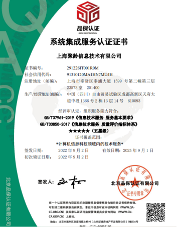 日前,聚龄凭借过硬的技术实力和多个系统集成服务案例,经权威机构评估,顺利通过GB/T37961-2019系统集成服务认证,确认了聚龄在系统集成服务上在全行业范围的服务方面的领先性,认可聚龄为客户提供业内前列的系统集成服务。
